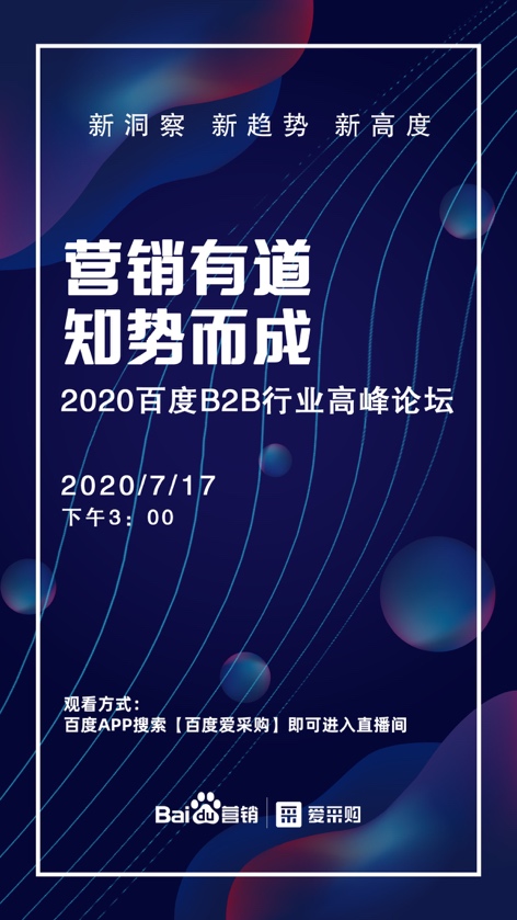 7月初,由百度愛采購(gòu)攜手百度營(yíng)銷中心聯(lián)合發(fā)布了《2020年百度B2B行業(yè)洞察報(bào)告》,該報(bào)告深度分析B端市場(chǎng)在2019年至2020年的核心數(shù)據(jù)、主要變化及未來趨勢(shì)。為了使各位企業(yè)老板更清晰看懂百度大數(shù)據(jù)的洞察,同時(shí)幫助企業(yè)解讀B2B行業(yè)萬億規(guī)模下的市場(chǎng)機(jī)會(huì),把握需求者的決策行為與路徑特征,助力企業(yè)瞄準(zhǔn)需求,百度愛采購(gòu)攜手百度營(yíng)銷中心共同發(fā)起2020百度B2B行業(yè)高峰論壇。