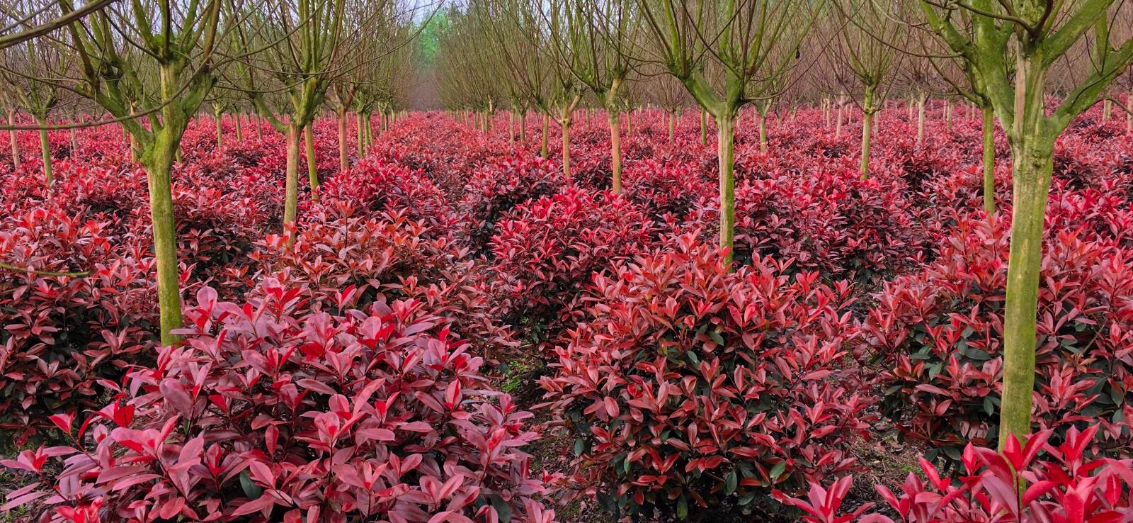 成都觀蒙花木有限公司在成都崇州地區(qū)經(jīng)營近兩千畝以魯賓斯紅葉石楠為主的苗木示范園區(qū),其中冠徑1.2米至2米球狀紅葉石楠近百萬株,修型整齊;另有條狀幾十萬株,尤其適合需求量大的綠化工程。紅葉石楠作為彩植,被廣泛用于公路隔離帶、防火隔離帶、街道、園林的綠化,以及綠籬和幕墻。 [