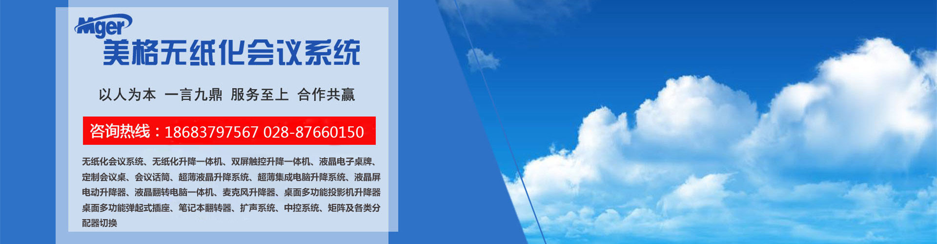 成都美格語哲智能科技有限公司是廣州市美格視聽科技有限公司在成都的辦事處,公司是集設計、開發(fā)、研究、加工、生產(chǎn)、銷售無紙化會議系統(tǒng)、辦公自動化產(chǎn)品、燈光、影視器材、投影機周邊設備為一體的高新技術企業(yè)。我公司產(chǎn)品齊全,產(chǎn)品包括無紙化會議系統(tǒng)、超薄液晶升降系統(tǒng)、無紙化會議升降一體機、雙屏觸摸升降終端、超薄集成電腦升降系統(tǒng)、翻轉屏、桌面液晶屏電動翻轉器、液晶屏電動升降器、麥克風升降器、電動升降講桌/臺、電動窗簾、桌面多功能投影機升降器(桌面/天花均可安裝)、桌面多功能彈起式插座、筆記本翻轉器、攝像機升降器、桌面花池升降器等現(xiàn)代商務辦公及會議系統(tǒng)、擴聲系統(tǒng)、中控系統(tǒng)、矩陣及各類分配器切換器。我們可根據(jù)客戶的實際情況,來圖來樣加工定做相關產(chǎn)品。 我們始終以市場和顧客的需求為宗旨,以產(chǎn)品的質量和確保承諾為已任,秉承“品質為先、信譽為先、服務為先”的精神,憑借雄厚的技術力量、先進的生產(chǎn)設備和誠信為本的經(jīng)營理念,贏得了廣大客戶的喜愛。我們也一直為實現(xiàn)成為業(yè)內杰出企業(yè)這個的目標而孜孜不倦地努力。在全體員工的共同努... [詳細介紹]  |