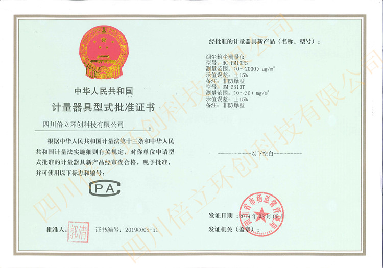 中華人民共和國計量器具型式評價證書