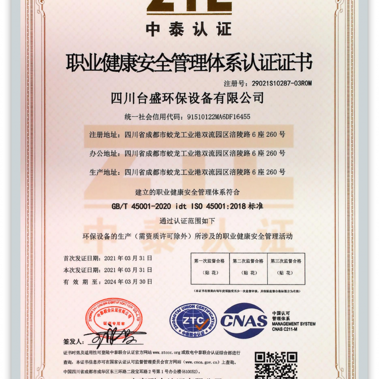 | 發(fā)證機(jī)構(gòu): | 中泰聯(lián)合認(rèn)證有限公司 | 發(fā)證時(shí)間 : | 2021-03-31 |