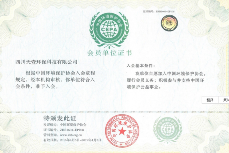 榮譽(yù)資質(zhì) 中國(guó)環(huán)境保護(hù)協(xié)會(huì)會(huì)員單位證書(shū)