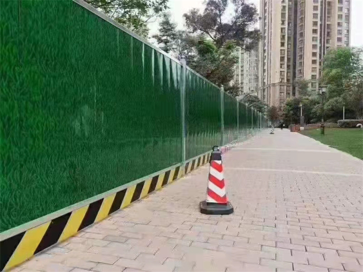 圍擋基腳采用M10水泥砂漿砌筑MU10頁巖磚磚砌0.5*0.5的基礎(chǔ),用于增強(qiáng)圍擋抗風(fēng)穩(wěn)定性;pvc圍擋設(shè)2.5米高,寬3米為一板。施工圍擋做美化處理,噴涂企業(yè)名稱、安全、質(zhì)量、文明施工用語及開發(fā)項(xiàng)目商業(yè)廣告,嚴(yán)禁張貼、涂寫垃圾廣告。