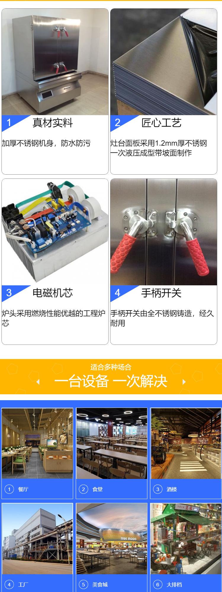 產品說明: 1、柜體邊框采用不銹鋼1.5mm厚制作,門板1.2mm厚制作 。 2、門板合頁采用不銹鋼3.0mm厚由激光切割而成。手柄開關由全不銹鋼鑄造而成,經久耐用 。 3、蒸汽管道和蒸汽閥均用不銹鋼自制而成。 4、 采用電磁機芯,火力猛。 5、 功率:20KW。 6、運行平穩(wěn),完全符合環(huán)保要求。 搜索 復制 聯(lián)系方式