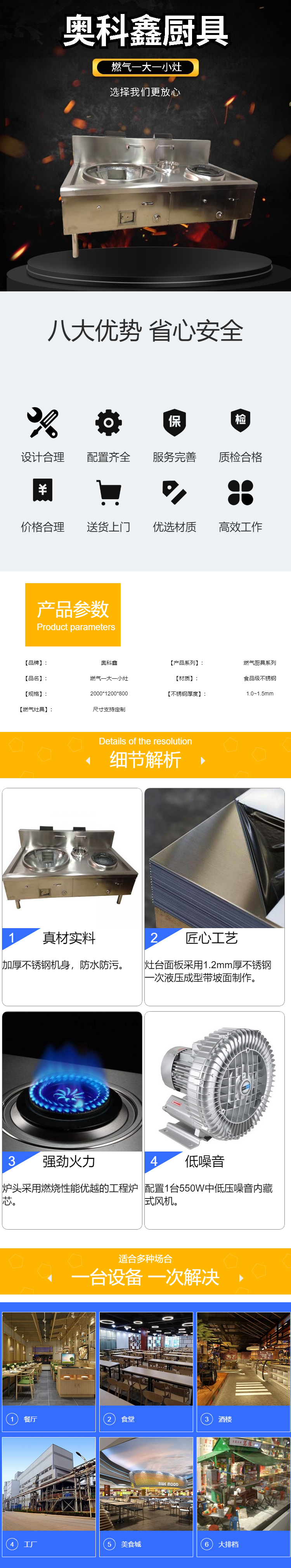 1、整臺(tái)灶臺(tái)設(shè)計(jì)豪華大氣、美觀、結(jié)實(shí)、氣勢(shì)非凡。