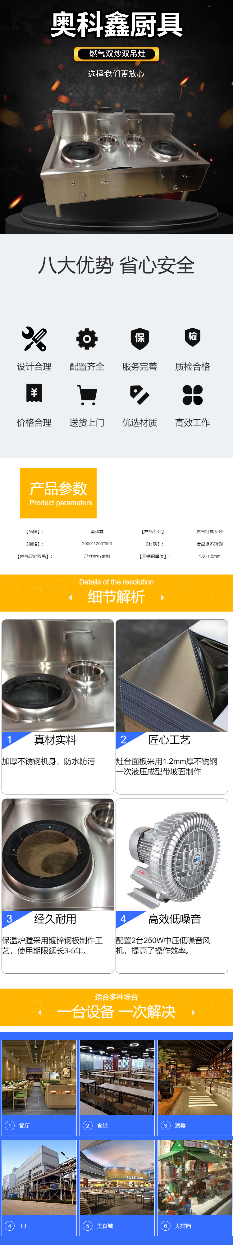 1、整體灶臺(tái)設(shè)計(jì)豪華大氣、美觀(guān)、結(jié)實(shí)、氣勢(shì)非凡。