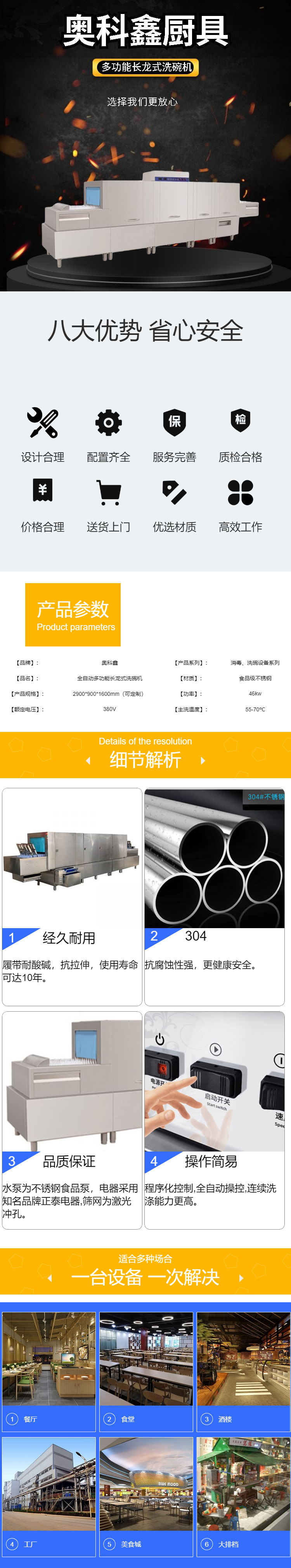 餐具由傳送裝置上棘爪步進移動前進,由上.下洗滌臂,噴淋臂,同時沖洗更干凈,更徹底.完美的洗滌效果.簡易的操作.精巧.但洗滌量大.節(jié)省能源的特色,程序化控制,全自動操控,傻瓜式設計,操作簡易,連續(xù)洗滌能力更高,雙層臂式結構,保溫更好,節(jié)約能源 ,緩存水箱設計,使升溫更加迅速,保證連續(xù)洗滌.不同操作方向。