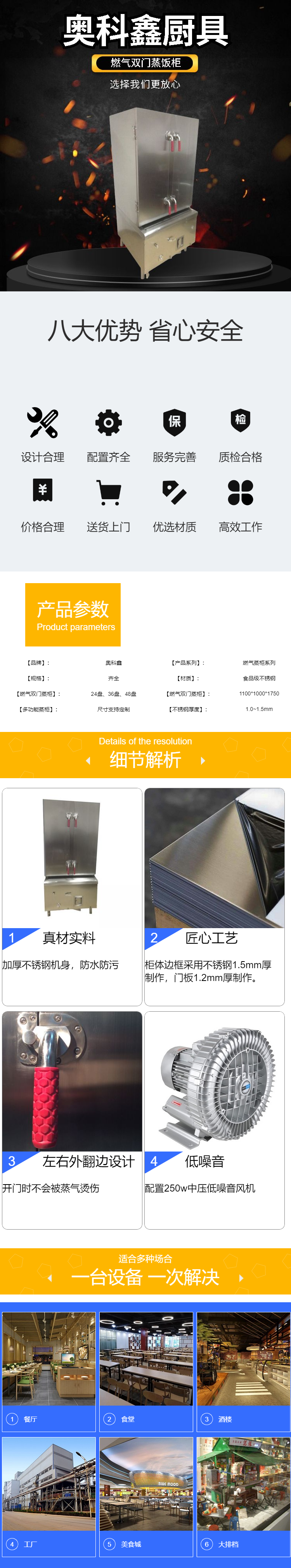 1、整臺蒸柜設計豪華大氣、美觀、敦厚、結實。