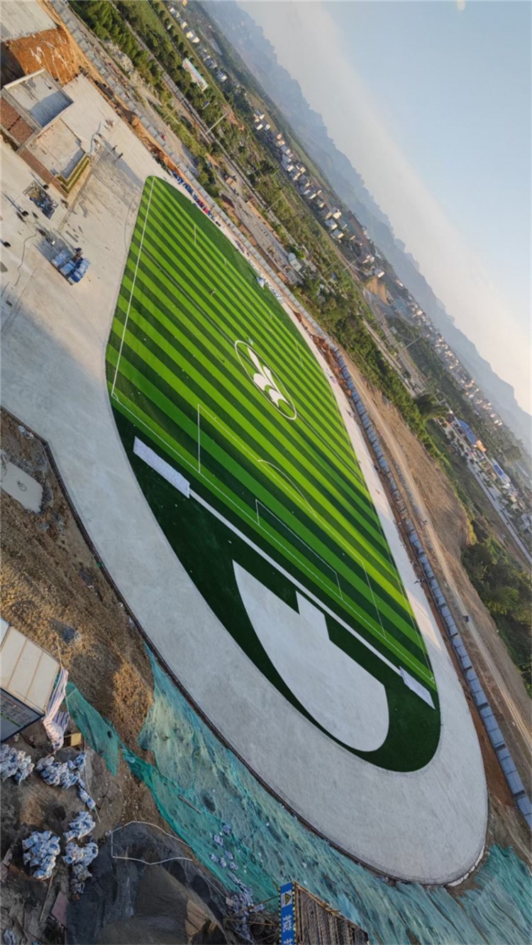 耙刮平,鋪設(shè)厚度9mm,固化保養(yǎng)24小時(shí)。全場(chǎng)倒入2mm厚跑道面層材料,刮耙刮平,全場(chǎng)均
