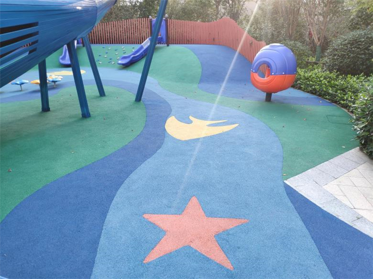 1、EPDM色澤豐富多彩,可任意組合各種顏色的圖案,特別適合幼兒園活動(dòng)場(chǎng)地建設(shè)。