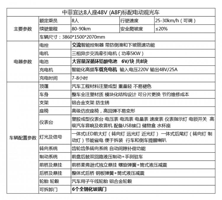 產(chǎn)品參數(shù) 產(chǎn)品名稱:阿童木觀光車 白色 四輪 8座 爬坡能力強(qiáng) 充電速度快