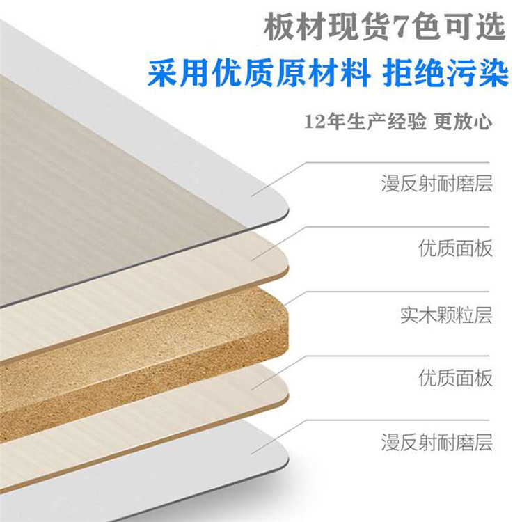 3、板面材質(zhì):面板采用進(jìn)口烤漆板,墨綠色、亞光,厚度0.3mm,板體附著面無裂紋、無流痕、無氣泡等;板面細(xì)膩平整、書寫流暢、字跡清晰、擦后無殘留、耐磨損、耐腐蝕;板面顏色色調(diào)柔和、時(shí)尚美觀,學(xué)生任何角度都能正常觀看,可視效果好,有效保護(hù)師生的視力健康。