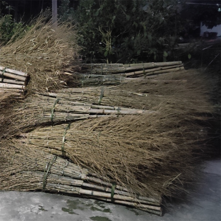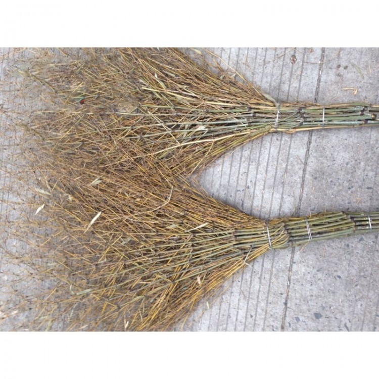 把一捆竹苗拆開:分為,大,中,小再打掉竹苗上竹葉。大竹苗去掉小的支叉5-6節(jié)為上蓋。中竹苗去掉小的支叉5節(jié)分為底蓋和邊緣。再把上蓋編好后,上面把大竹苗和中竹苗分扇面形鋪好。兩邊為邊蓋,下面為底蓋。用夾子夾住,免得散開。然后用鐵絲在每隔5-12厘米處綁住。一把新的竹掃帚就這樣制作出來了,竹掃帚可以用于清掃量大的垃圾物品,環(huán)衛(wèi)掃帚可用于馬路對粘性的東西可以清理干凈。竹掃帚可用于:馬路,公園,學(xué)校,操場等,重要的是掃帚能環(huán)保。