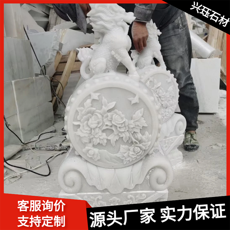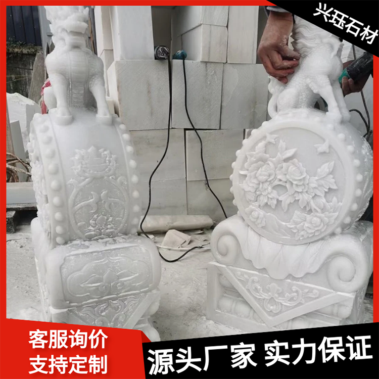 漢白玉門鼓石 天然石材門墩 抱鼓門口擺件
