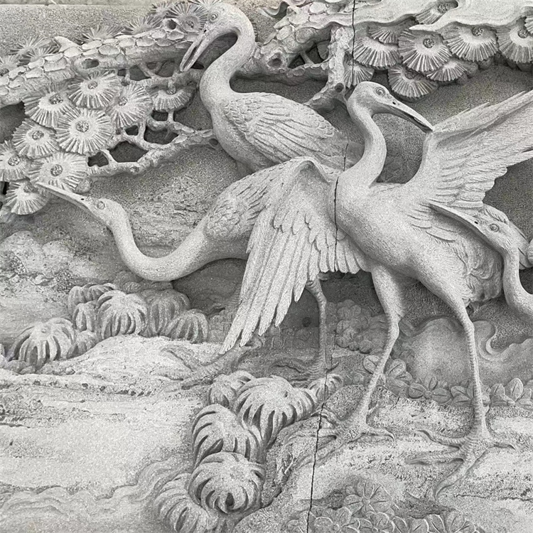 漢白玉浮雕采用傳統(tǒng)的散點(diǎn)透視法則,打破時(shí)空概念,使整體畫面顯得飽滿緊湊,豐富有序,主次分明,繁而不亂。即使那些專作裝飾以襯托主題思想的圖案,也雕刻得細(xì)致入微,令人叫絕。浮雕還施以彩繪和描金,顏色以紅、綠、黃、黑色為主,其中黃色為描金,歷經(jīng)千年至今仍艷麗如初,在陽(yáng)光下愈發(fā)流光溢彩,絢爛無比。