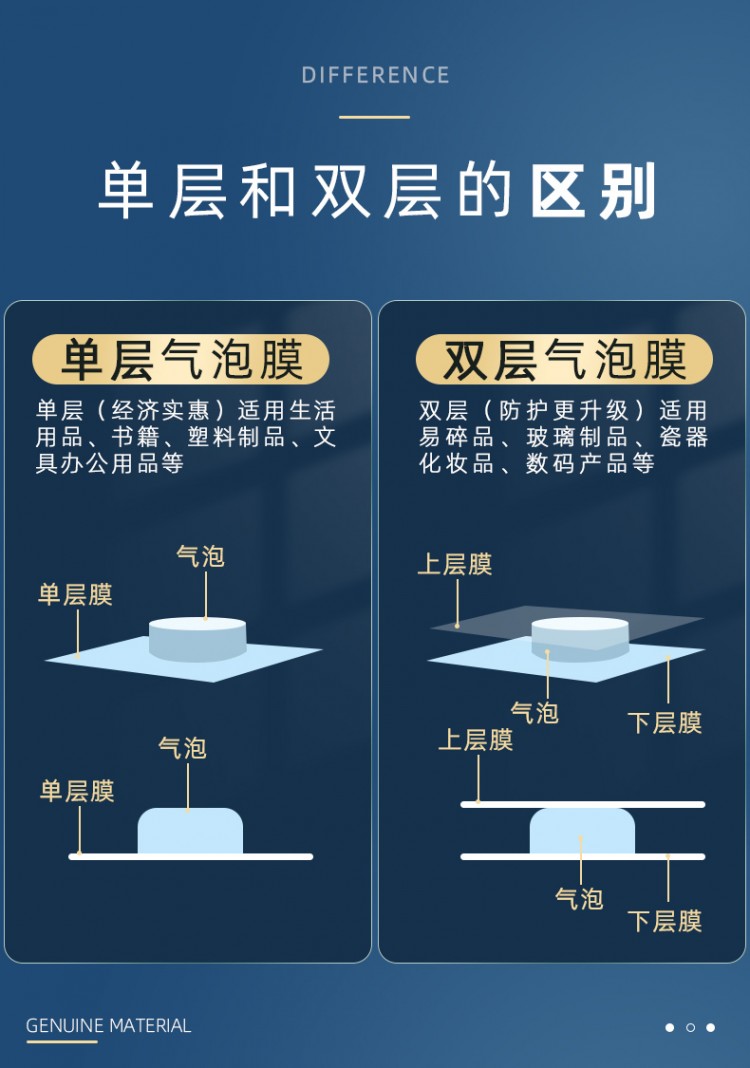 通過在塑料原料中加入不同的添加劑更可以制造防靜電等各種專用氣墊膜。防靜電氣墊膜,用于包裝電子元件、組件,如板、卡等,能防止靜電又能起到緩沖防振的作用。鍍鋁箔氣泡膜一般用于汽車太陽擋隔熱、房頂?shù)母魺?/span>
