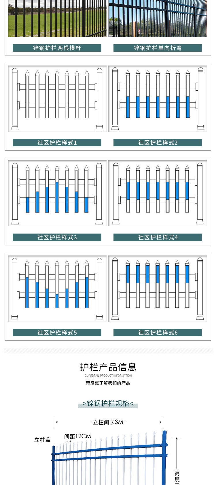 產(chǎn)品參數(shù) 產(chǎn)品名稱:四川廠家鋅鋼折彎護(hù)欄河道公園草坪護(hù)欄綠化小區(qū)折彎鋅鋼隔離柵欄圍欄