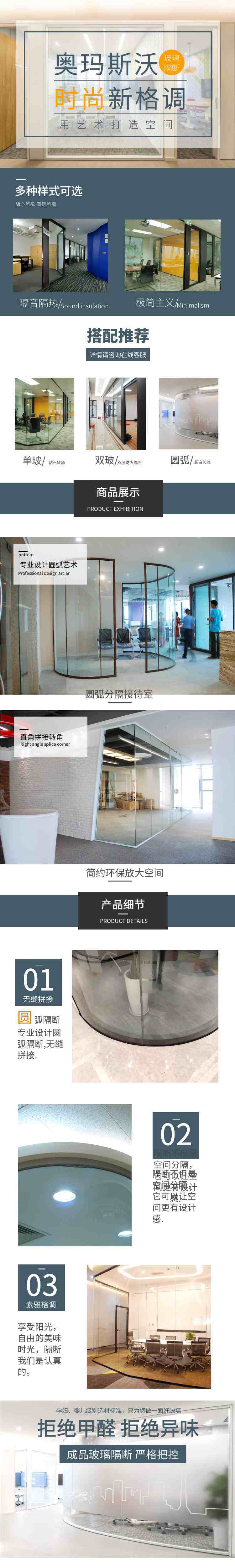 奧瑪斯沃 單層玻璃隔斷 寫字樓辦公室隔音透明屏風(fēng)