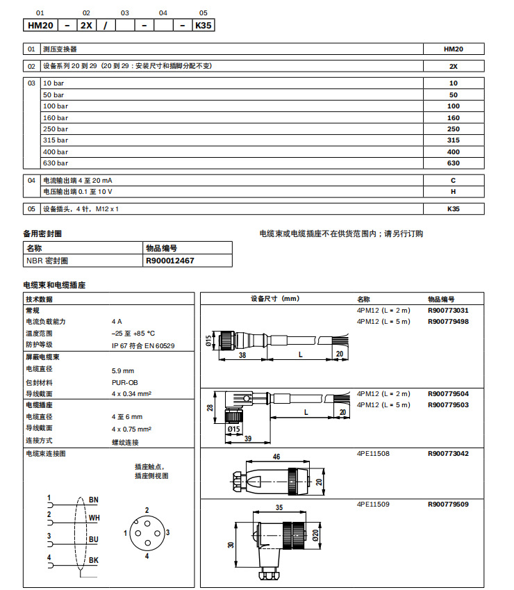 力士樂傳感器R901466599 HM20-2X/315-C-K35-N