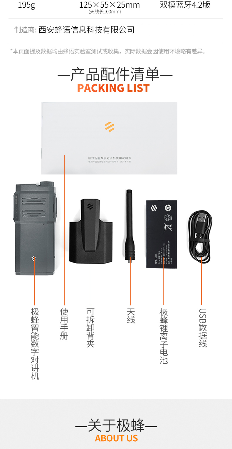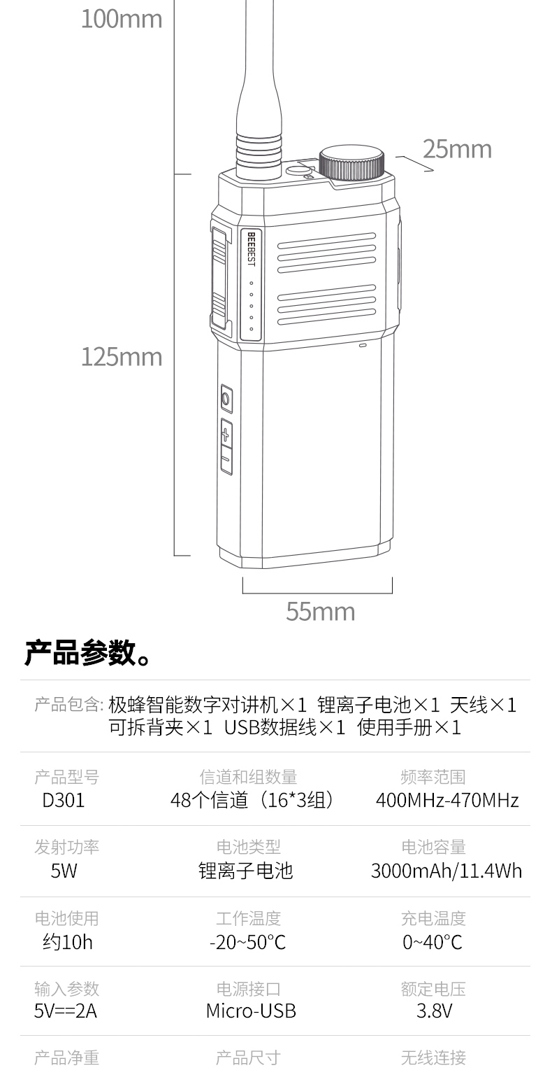 極蜂(BeeBest)D301 智能數(shù)字對(duì)講機(jī) 支持藍(lán)牙寫頻