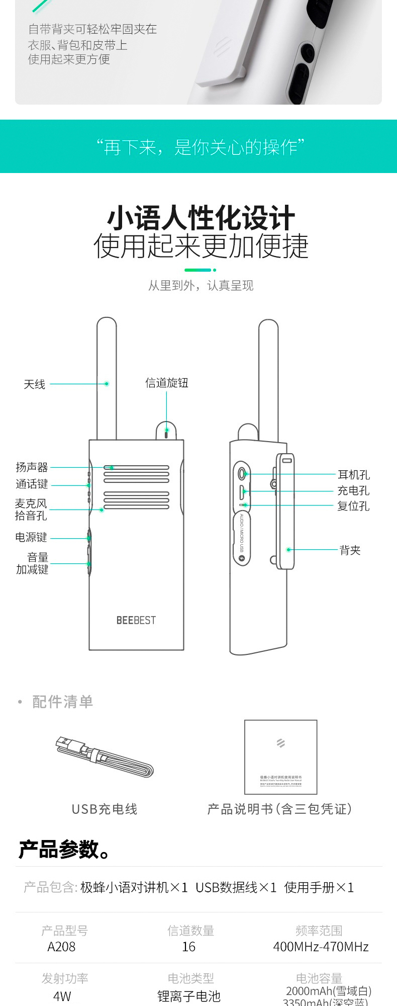 極蜂 BeeBest小語(yǔ)對(duì)講機(jī) 白色 A208民用戶(hù)外旅行自駕游