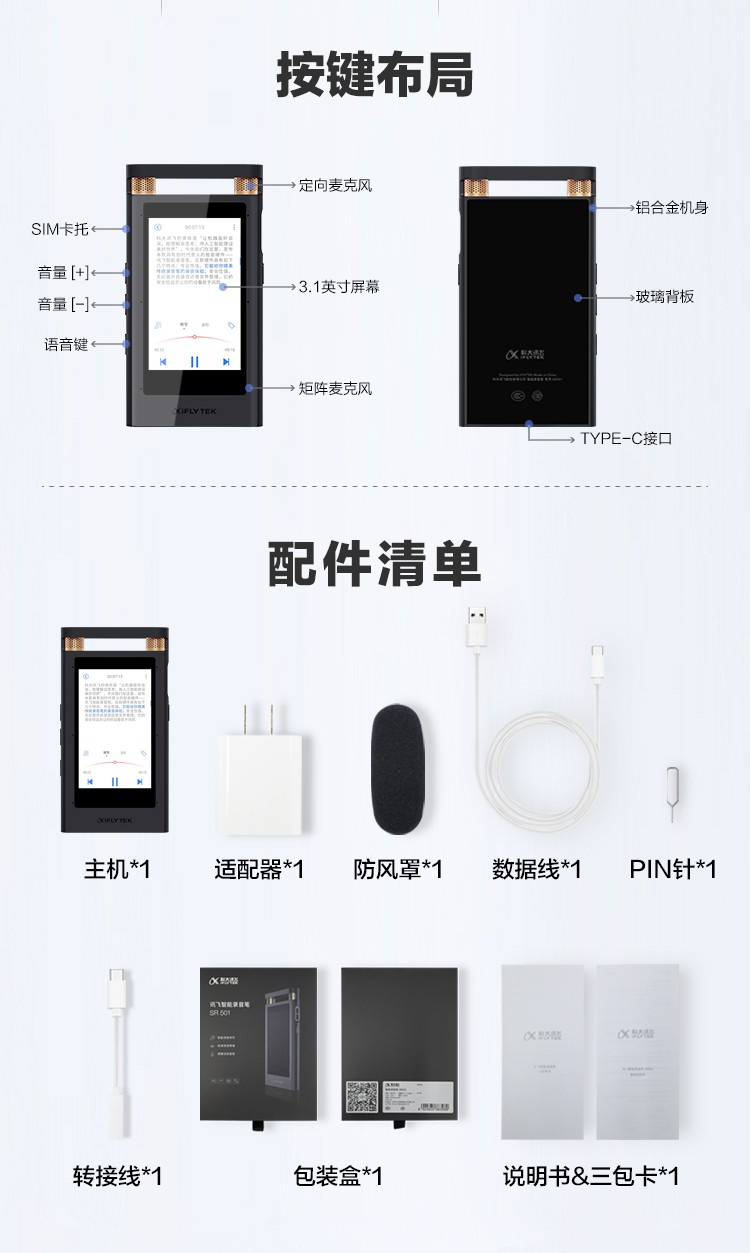 科大訊飛錄音筆SR701 Ai智能會(huì)議轉(zhuǎn)寫中英邊錄邊譯拾音算法 轉(zhuǎn)文字專業(yè)高清降噪錄音機(jī)