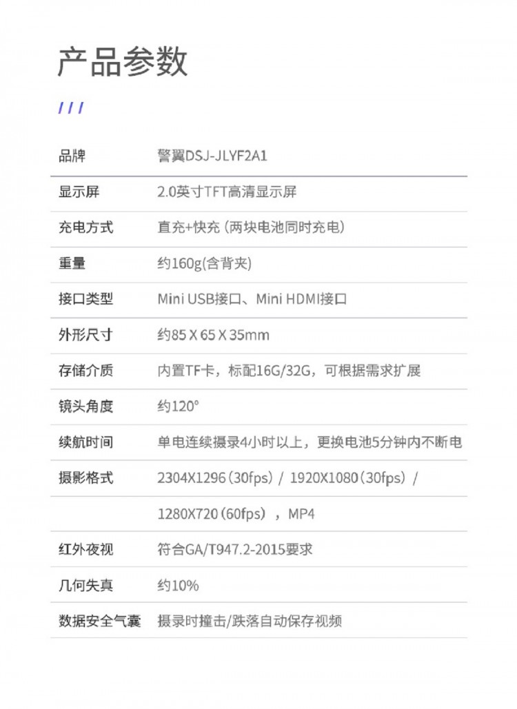 警翼F2音視頻記錄儀 高清 紅外夜視高速攝錄畸形修復(fù)DSJ-JLYF2A1