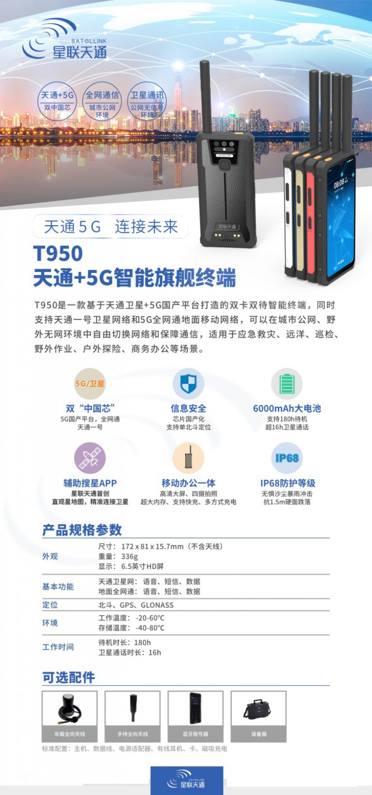 天通一號T950 5G衛(wèi)星智能電話衛(wèi)星手機IP68級防護6000毫安電池