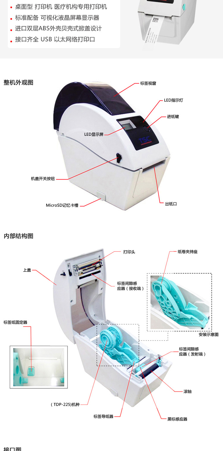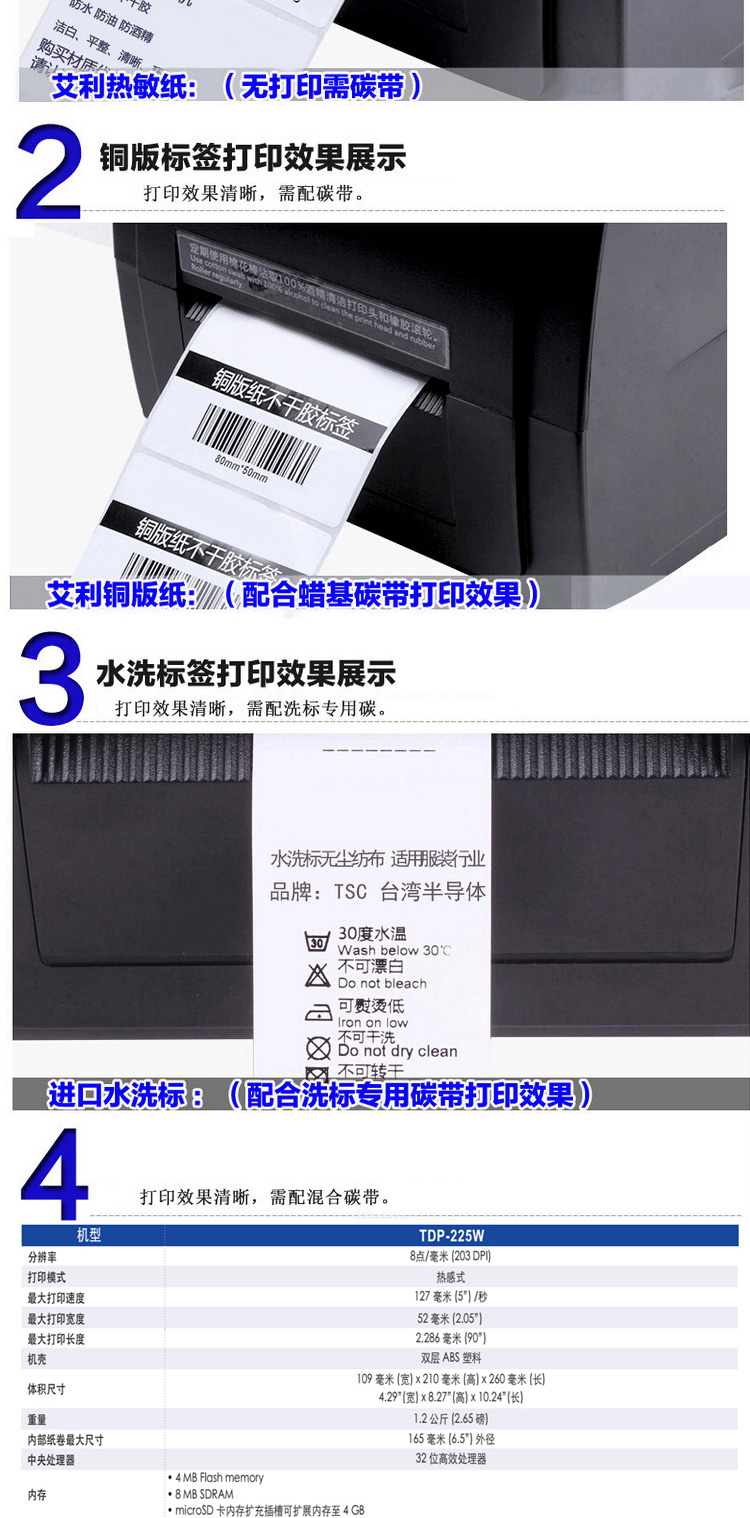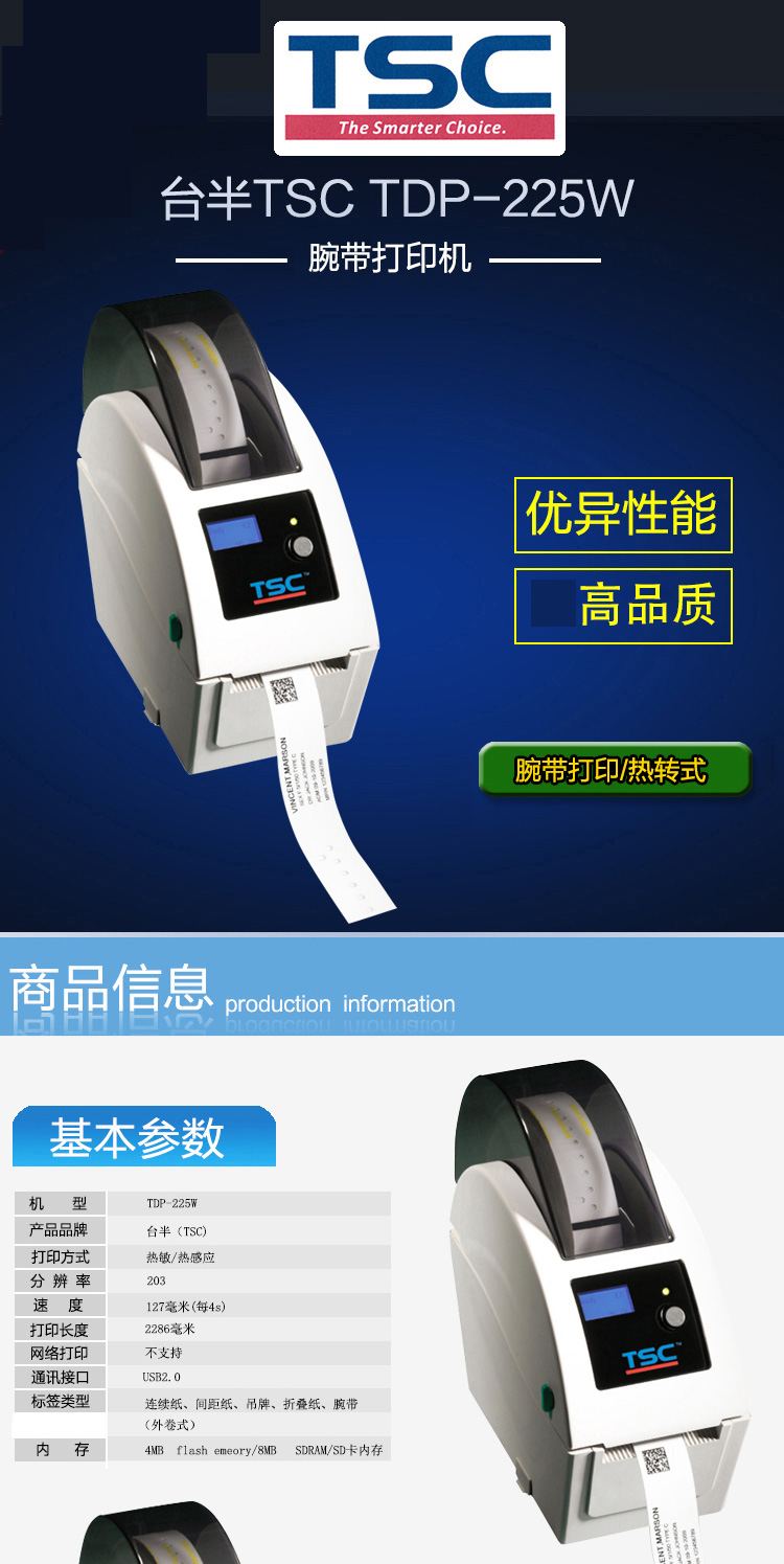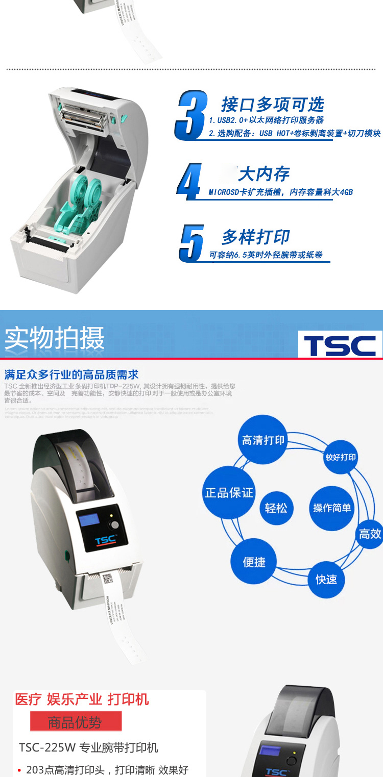 臺半TSC TDP-225W醫(yī)院社區(qū)衛(wèi)生院熱敏標簽腕帶打印機