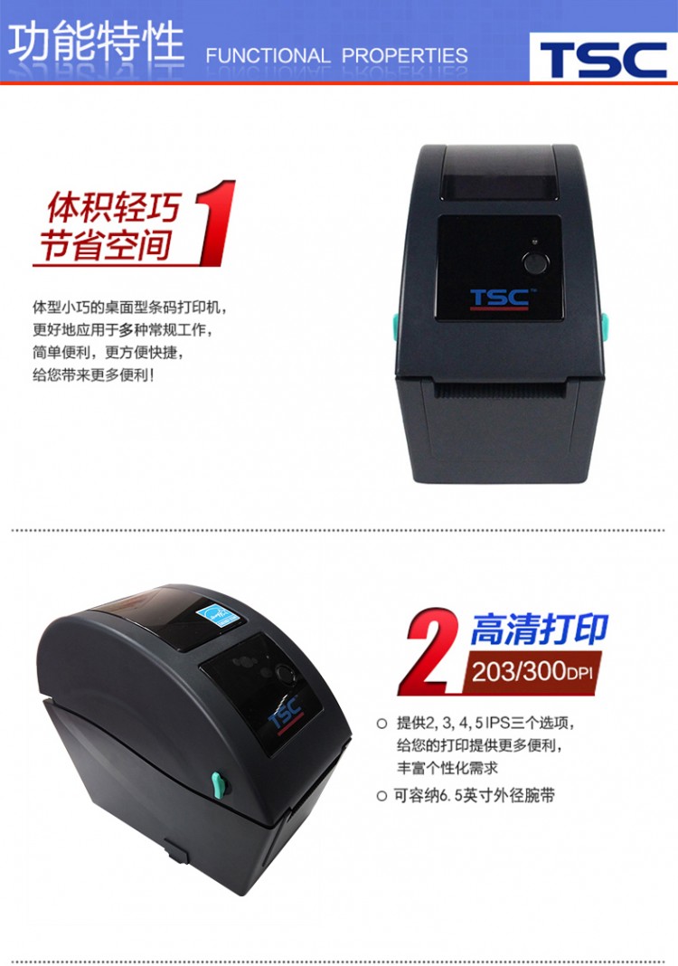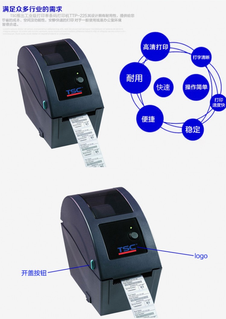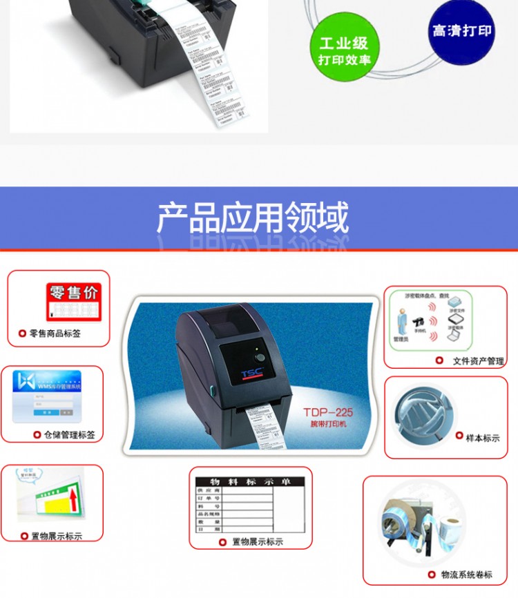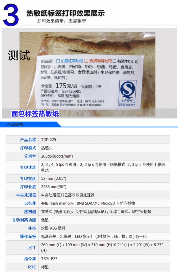 TSC TDP-225奶茶店標(biāo)簽熱敏紙輸液袋二維碼腕帶打印機(jī)