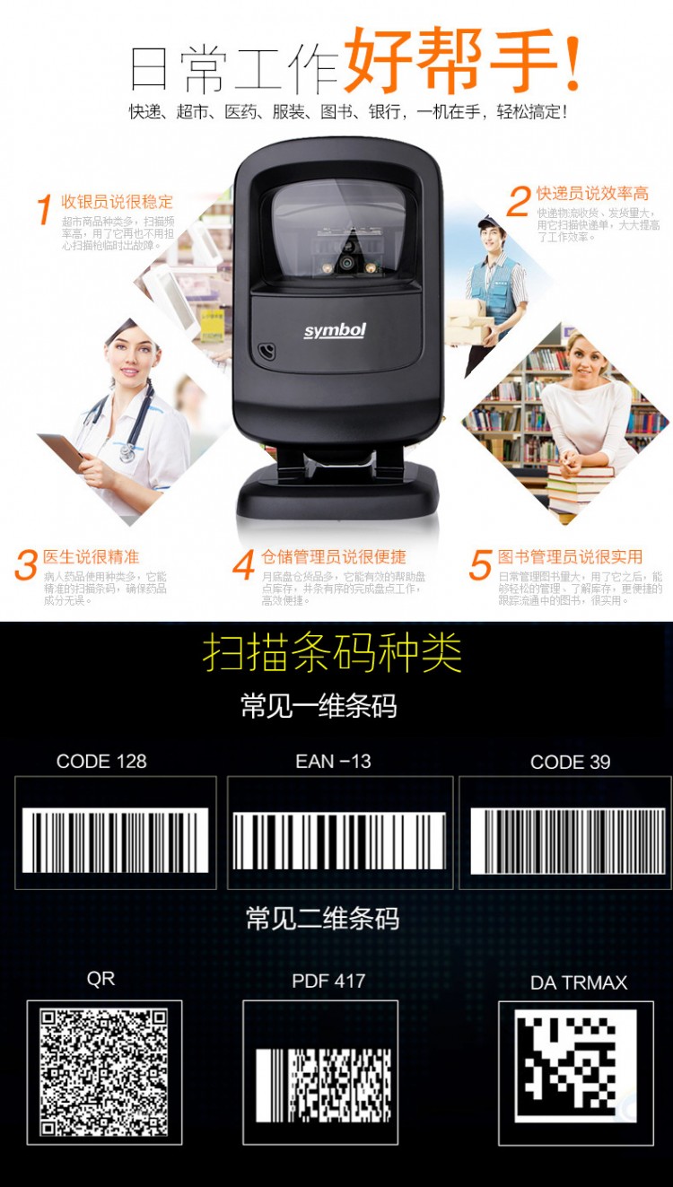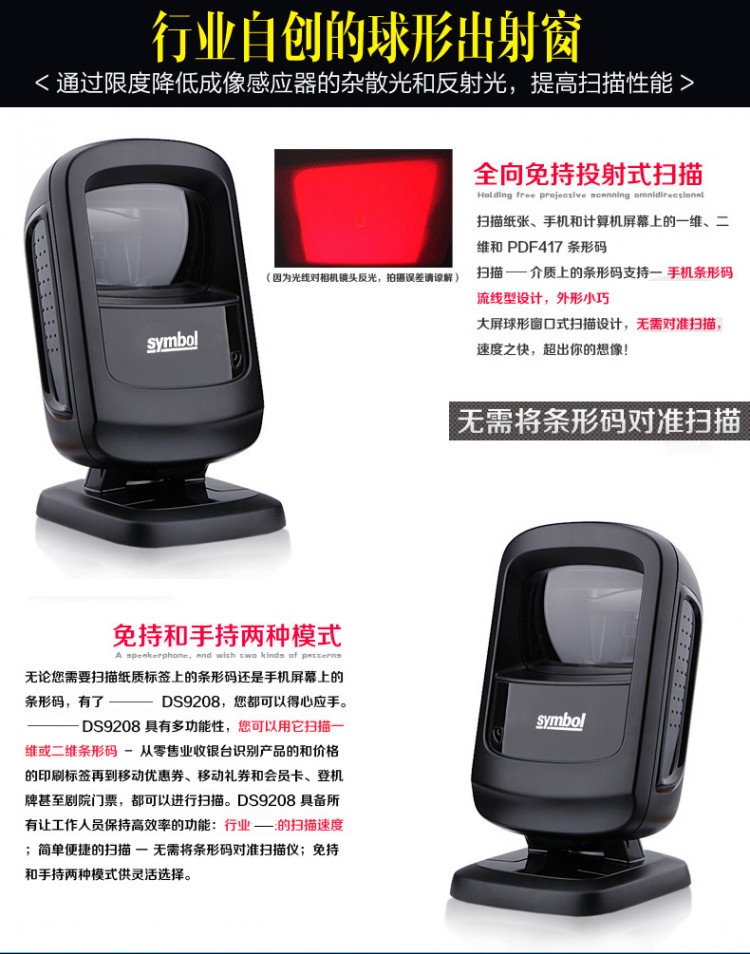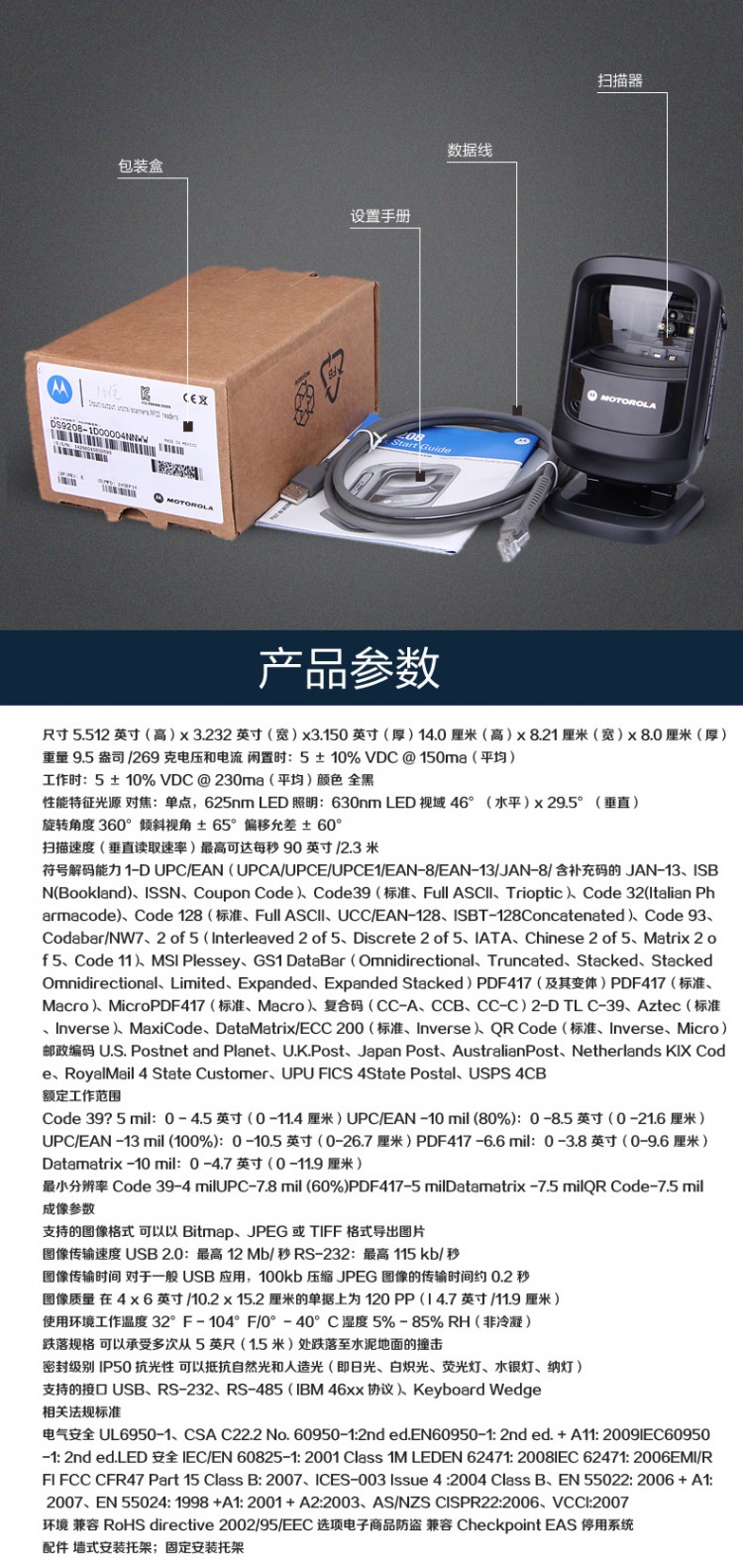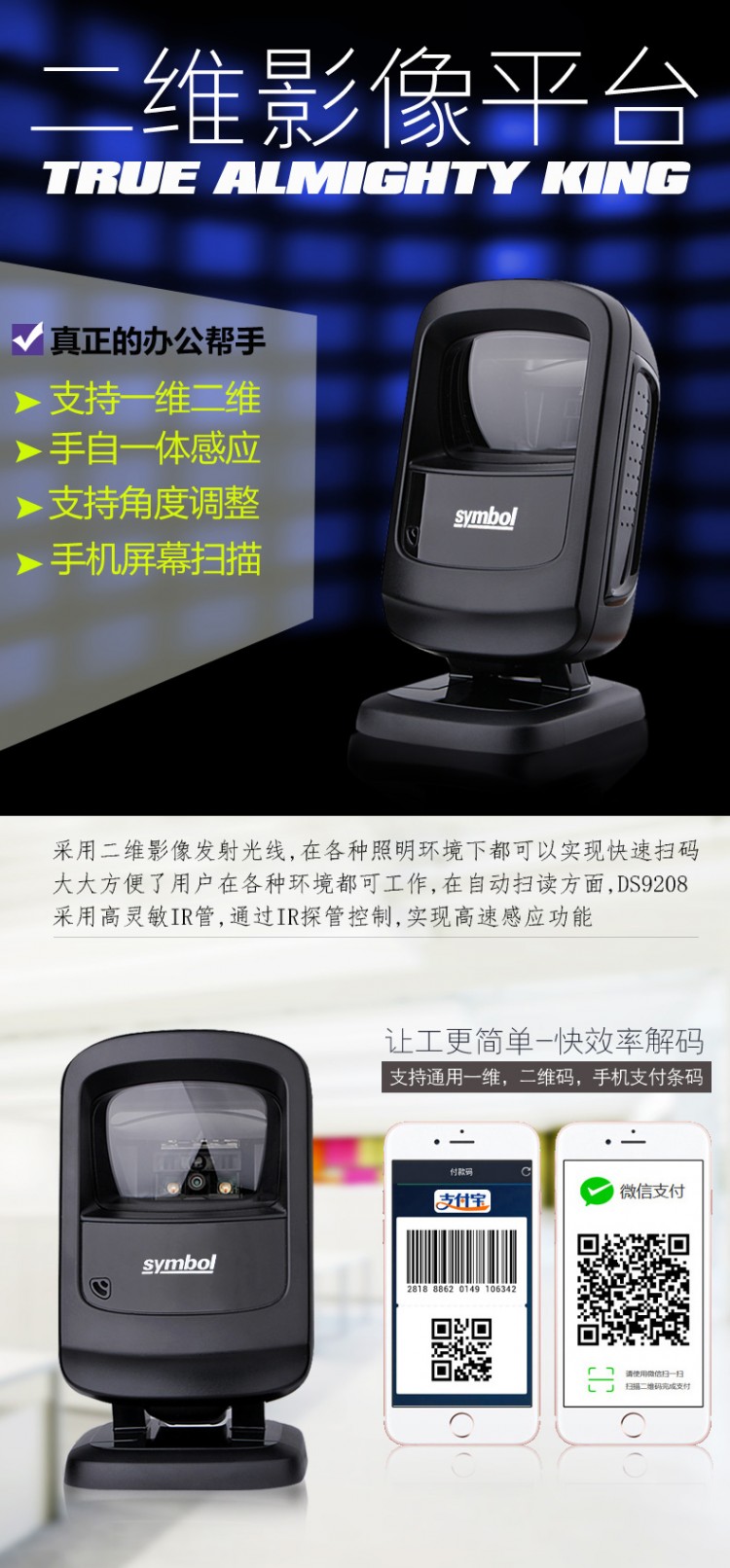 斑馬(ZEBRA)摩托羅拉訊寶系列條碼 快遞收銀掃描儀 型號DS9208-2D