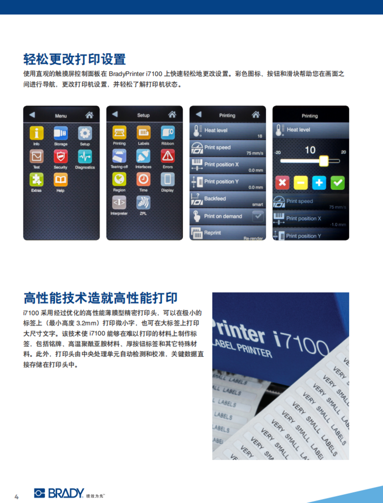 操作簡(jiǎn)便。超直觀的彩色觸摸屏可幫助您快速輕松地調(diào)整打印機(jī)設(shè)置。機(jī)器內(nèi)部明亮的綠色觸點(diǎn)使材料加載和調(diào)整更容易。