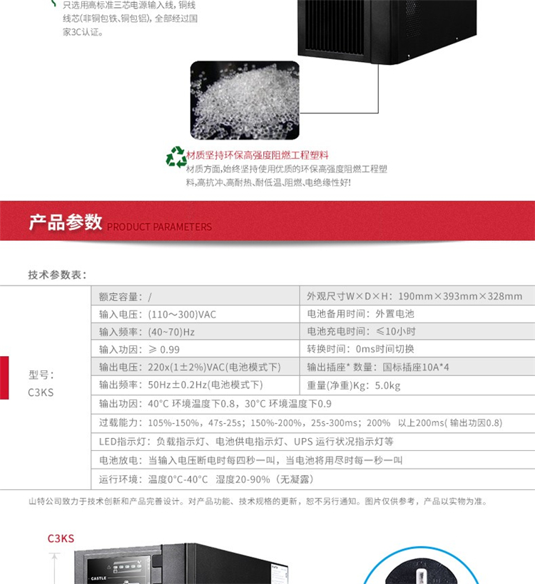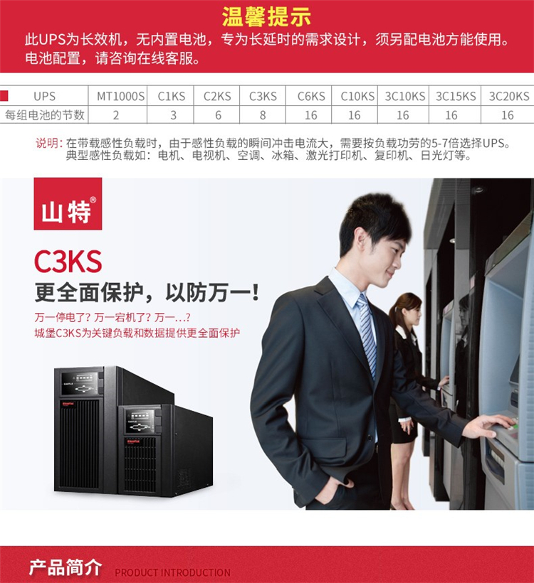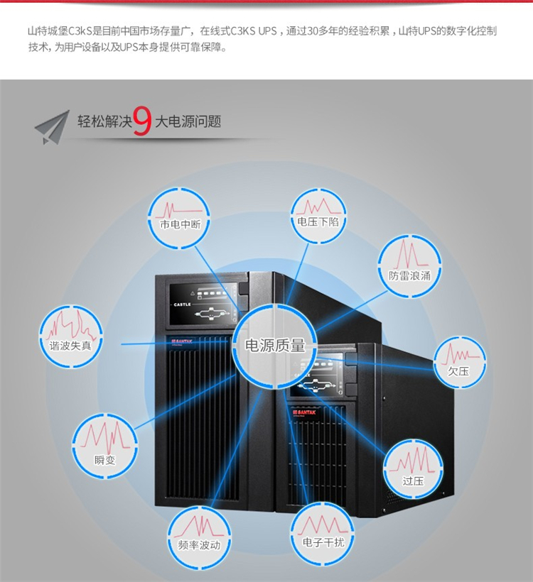 云南山特(SANTAK) 山特C3KS主機 ups不間斷電源3000VA/2400W服務器方案 長效機穩(wěn)壓延時續(xù)航