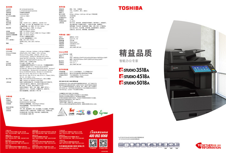 東芝產(chǎn)品將盡可能地減少對地球生態(tài)環(huán)境的影響。全新EBX2處理平臺,強(qiáng)大處理系統(tǒng),標(biāo)配2G內(nèi)存,高效應(yīng)對大量打印和復(fù)印作業(yè),標(biāo)配320G硬盤,輕松存儲海量文件,東芝通用打印驅(qū)動(UPD)可以輕松打印CBX平臺復(fù)合機(jī),支持擁有PCL/PS打印語言,還可以實現(xiàn)多臺設(shè)備并行打印,高速文件輸出,高速 文件掃描,支持紙張容量可以達(dá)到7600頁,東芝復(fù)印機(jī)不停機(jī)更換墨粉,高效作業(yè)處理。