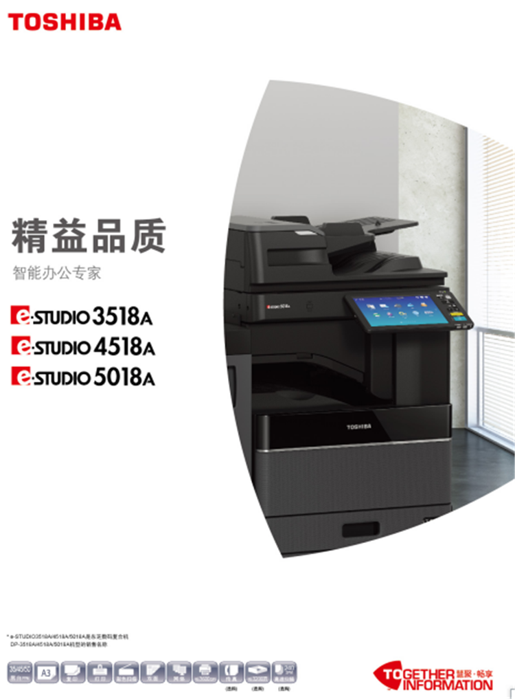 東芝數(shù)碼復(fù)合機(jī)擁有穩(wěn)固的機(jī)械結(jié)構(gòu),強(qiáng)大的紙張適應(yīng)性及處理能力,精細(xì)的印品品質(zhì),同時兼容多種智能解決方案,能滿足更多樣化,更高標(biāo)準(zhǔn)的現(xiàn)代辦公需求。