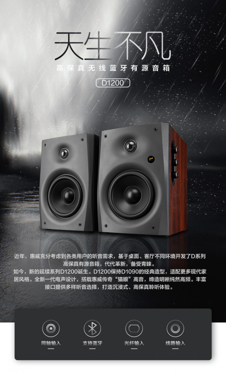 首頁 >成都匯昌科技有限公司>【新品】HiVi惠威D1200高保真無線藍牙有源音響 電腦多媒體桌面音箱 家用音響設(shè)備