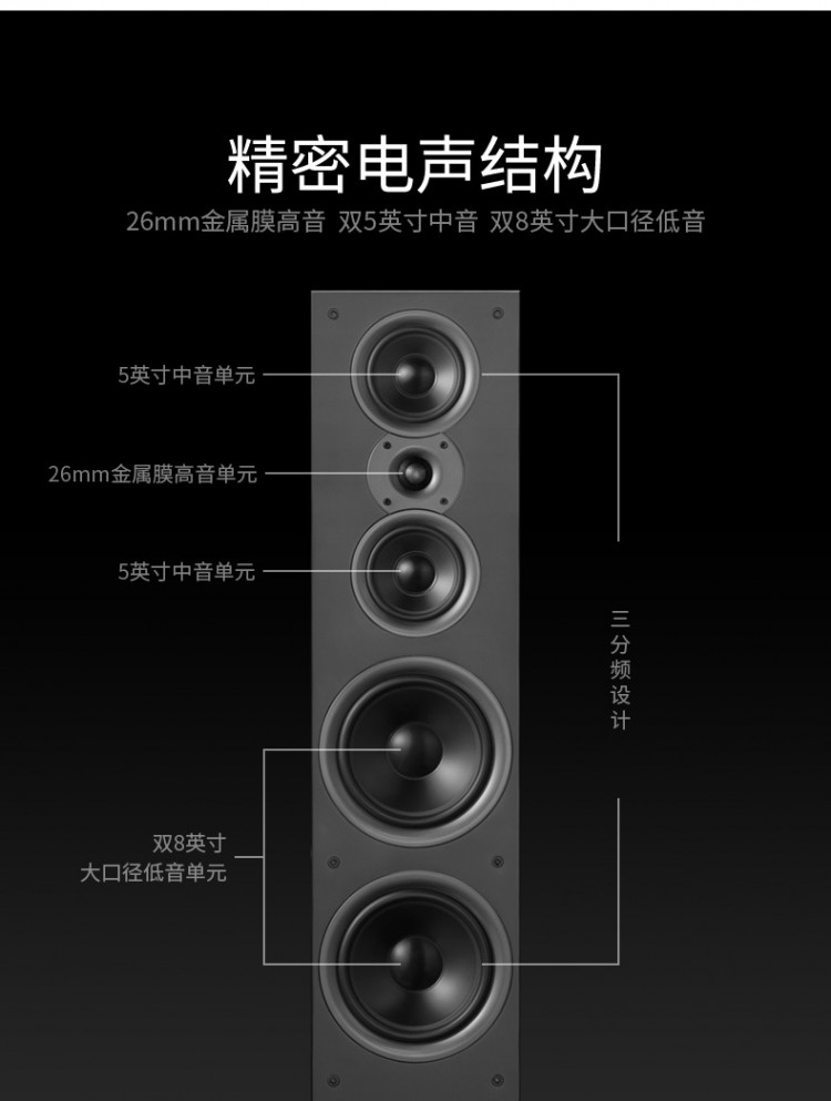 | 中置單元配置 | 專(zhuān)業(yè)5英寸中低音x2 26mm球頂高音 | 中置頻率范圍 | 66Hz-20kHz | |