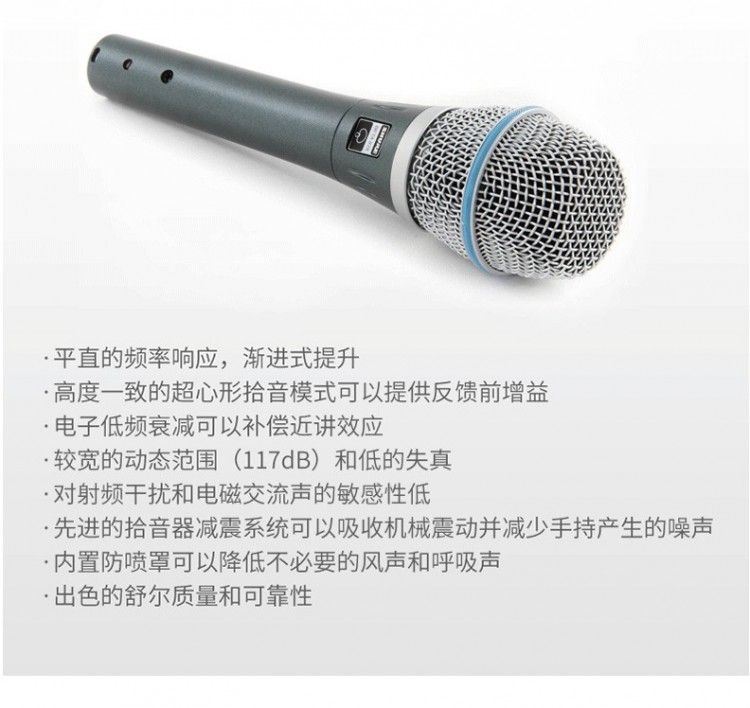 SHURE/舒爾 BETA87A手持專業(yè)電容麥克風(fēng) 歌手舞臺演出話筒設(shè)備 家用K歌話筒錄音拾音設(shè)備(心形指向)