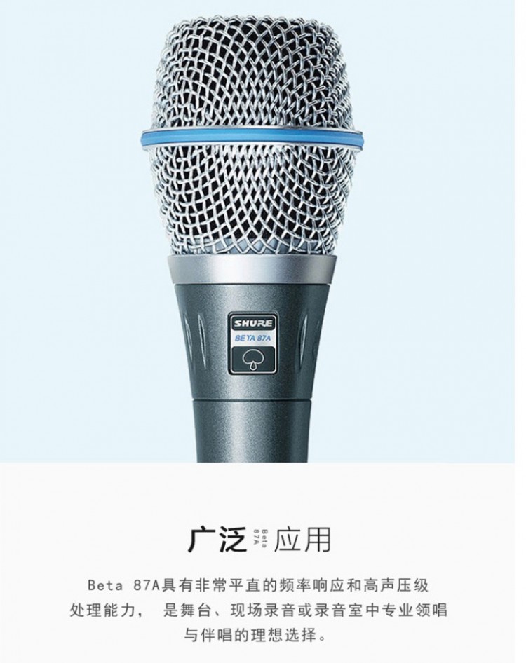 首頁 >成都匯昌科技有限公司>SHURE/舒爾 BETA87A手持專業(yè)電容麥克風(fēng) 歌手舞臺演出話筒設(shè)備 家用K歌話筒錄音拾音設(shè)備(心形指向)