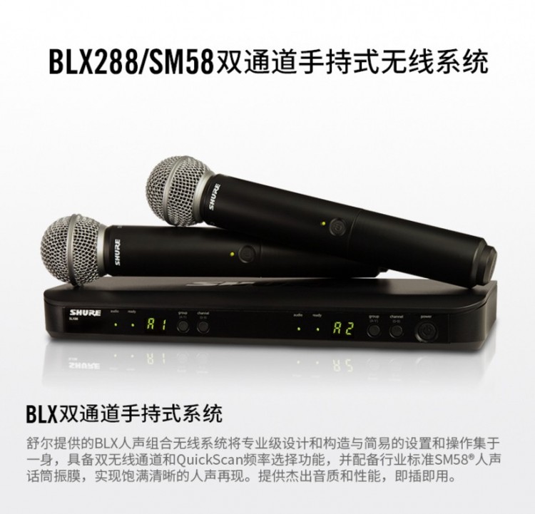舒爾話筒BLX288CN/SM58 婚慶主持一拖二無(wú)線手持話筒 會(huì)議演講專業(yè)麥克風(fēng)