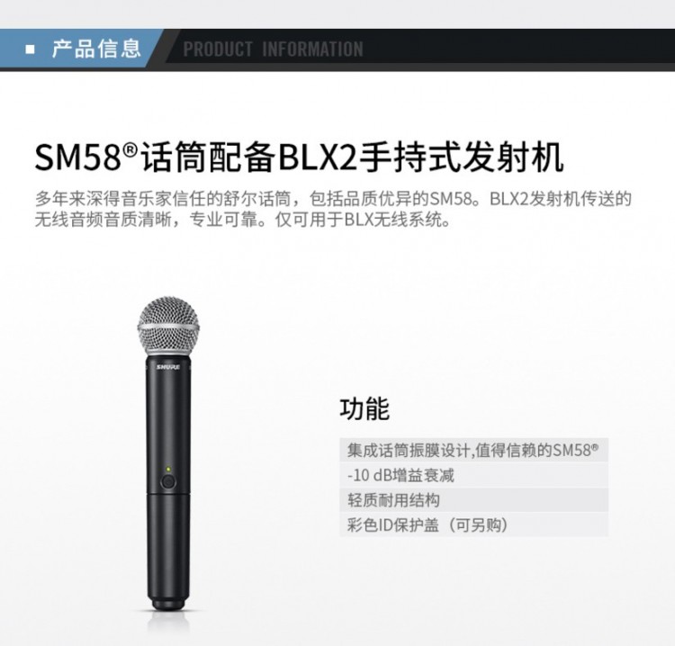 | 品牌 | 舒爾 | 型號(hào) | BLX288CN/SM58 | |