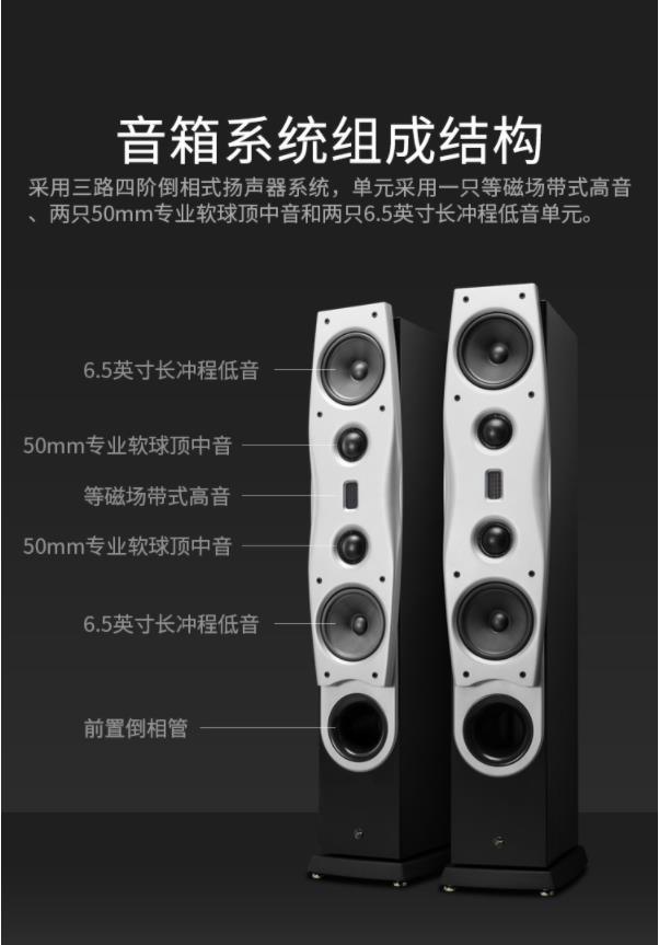 | 系統(tǒng)形式 | 三路四階倒相式音箱系統(tǒng) | 單元配置 | 等磁場(chǎng)帶式高音 | |