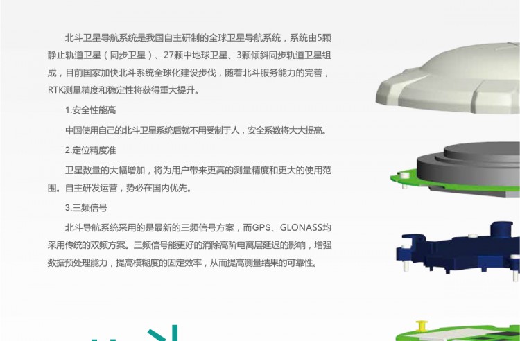 北斗衛(wèi)星導(dǎo)航系統(tǒng)是我國自主研制的全球衛(wèi)星導(dǎo)航系統(tǒng),系統(tǒng)由5顆靜止軌道衛(wèi)星(同步衛(wèi)星)、27顆中地球衛(wèi)星、3顆傾斜同步軌道衛(wèi)星組成,目前國家加快北斗系統(tǒng)全球化建設(shè)步伐,隨著北斗服務(wù)能力的完善,RTK測量精度和穩(wěn)定性將獲得重大提升。
