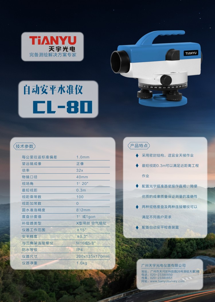 南方天宇CL-80高精度自動(dòng)安平水準(zhǔn)儀防水防塵水平儀矯正發(fā)貨