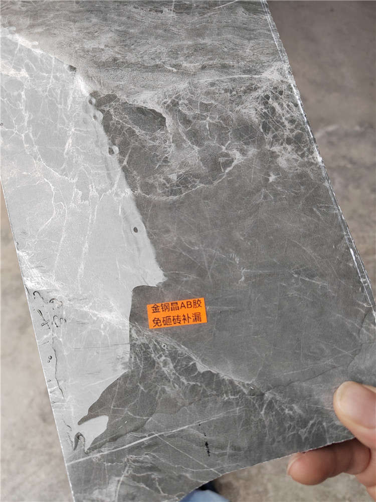 2:將鋼化膜2比1涂混合,用毛刷涂抹在每條縫隙上即可,24小時后正常使用,條件允許可用熱吹風機加快其干燥,48小時可以做閉水試驗。注意事項:AB料2比1混合攪拌均勻后需在20分鐘內(nèi)用完。