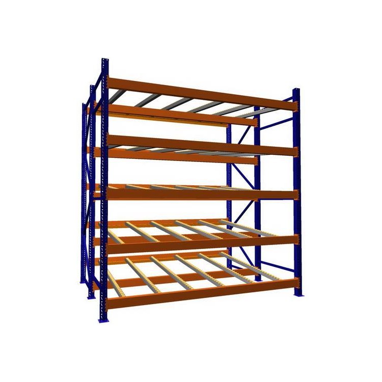 流利條貨架的設計類似于中型層板貨架,簡單的流利條貨架是將中型層板貨去除出層板,一層橫梁掛在不同高度,形成一個坡度然后架上鋁合金流利條再配合格擋,仿制紙箱傾斜掉落即可組成較簡單的流利條貨架。