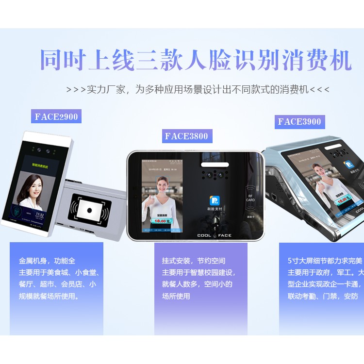 功能強(qiáng)大:同一臺設(shè)備支持消費(fèi)、充值、取款、查詢、錄人臉等核心功能。