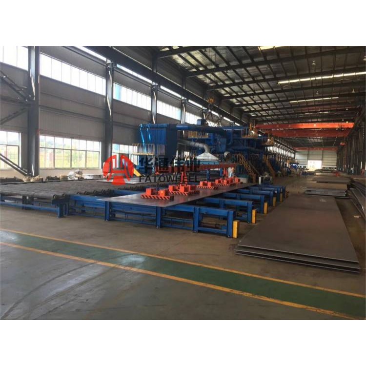鋼板預處理線產品結構:鋼板預處理線主要由輥道輸送系統(tǒng)、拋丸清理機、自動噴漆系統(tǒng)、烘干室、拋丸除塵系統(tǒng)、漆霧過濾系統(tǒng)和電控系統(tǒng)所組成,并可擴展自動上卸料系統(tǒng)和預熱室。