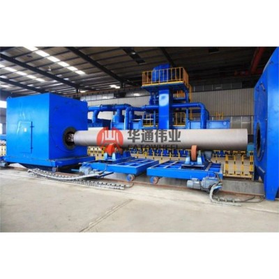 3、直徑大于等于400mm的鋼管,采用拋丸處理,利用鋼管內(nèi)壁專用拋丸器(液壓馬達(dá)驅(qū)動、長臂輸丸桿彈丸輸送),實現(xiàn)了拋丸器支撐工位自適應(yīng),拋打工位自調(diào)整等功能;