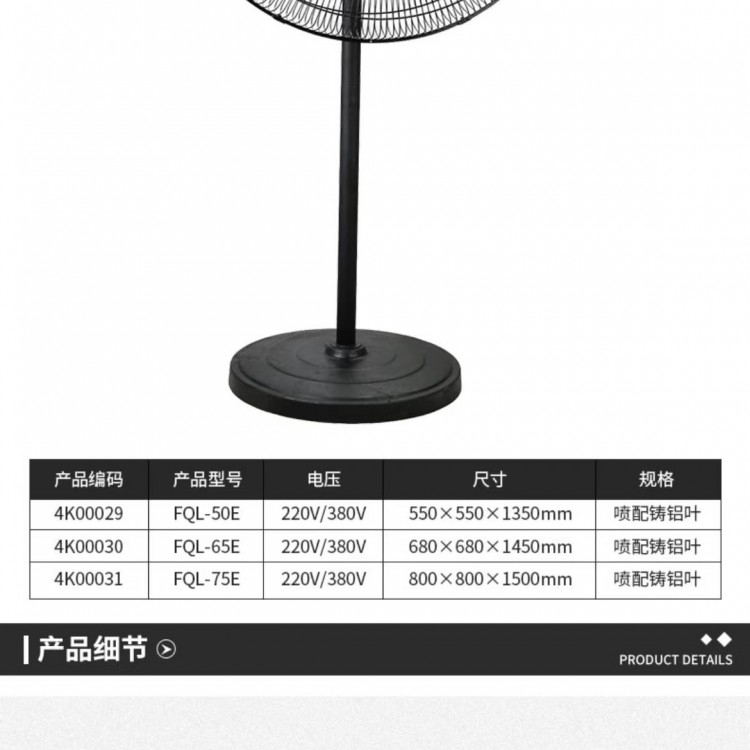 3、工業(yè)落地扇外殼剛性好,重量輕,易于安裝和運(yùn)輸;
